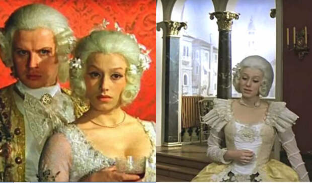 Слева — кадр из кинофильма «Остров сокровищ», справа — из фильма-спектакля «Принцесса на горошине» (1982)